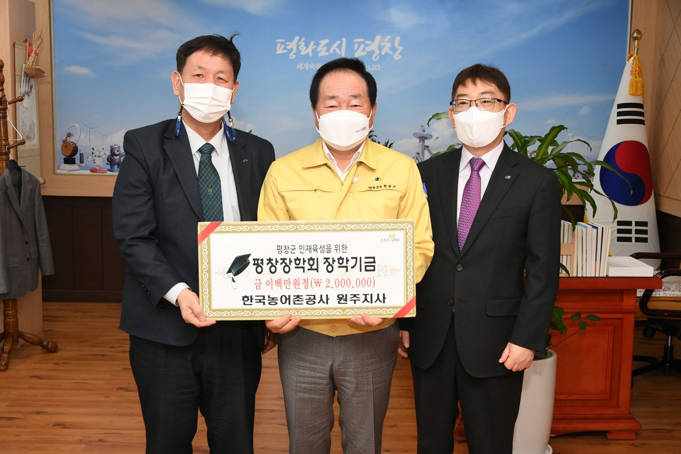 (재)평창장학회는 9일 평창군수실에서 한국농어촌공사 원주지사(지사장 진범두)가 200만원을 장학기금으로 기탁했다고 밝혔다.
