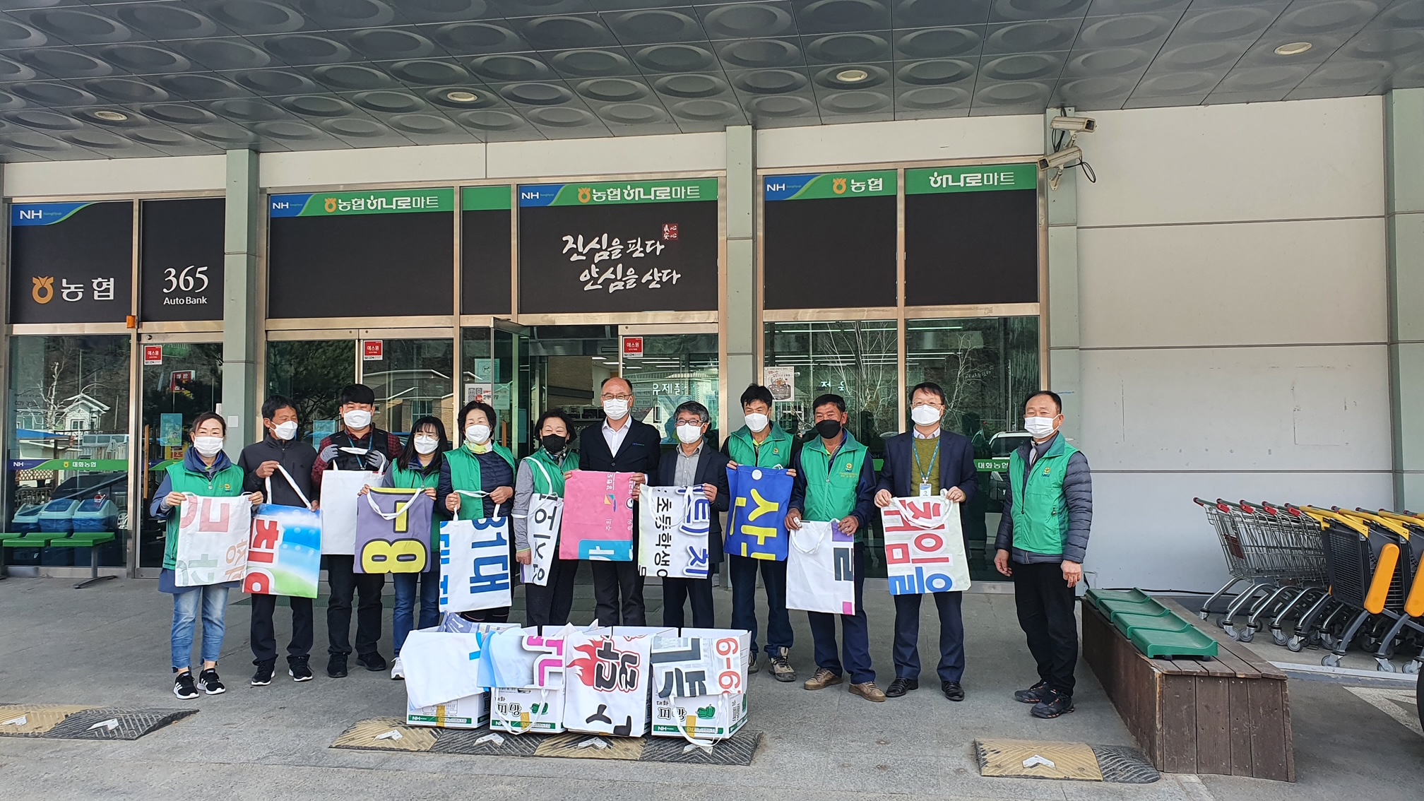 이는 최근 무분별한 일회용 비닐 사용으로 인해 환경오염이 심각해지는 것을 막고 주민들에게 환경보호 동참 메시지를 전달하기 위하여 새마을지도자들이 작은 손길을 모아 준비한 것으로, 지난 2월 말부터 생업으로 바쁜 와중에도 틈틈이 모여 버려진 폐현수막으로 장바구니 720장을 만들어 기증하였다.