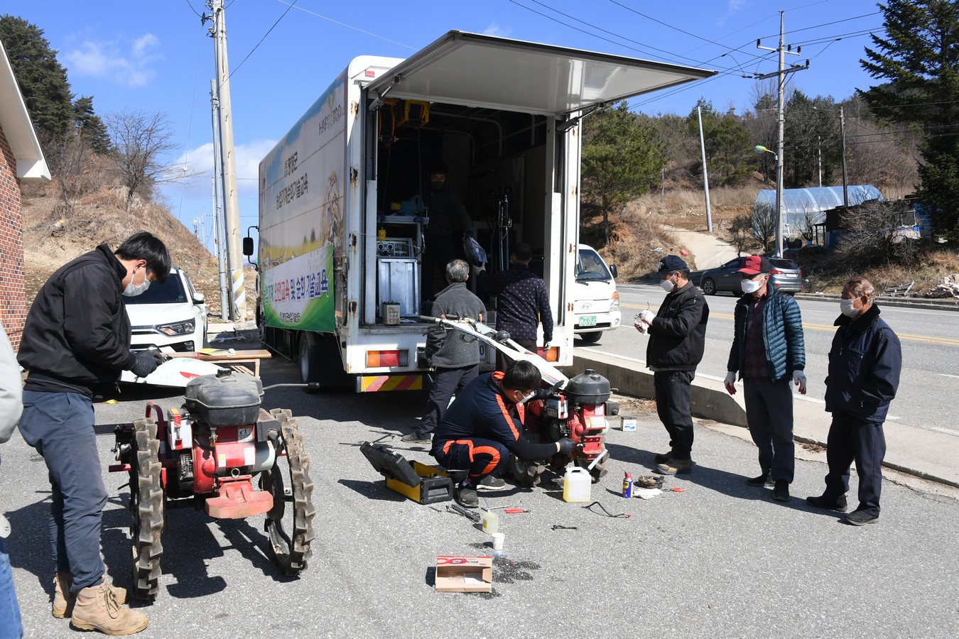 올해는 평창읍 대하리를 시작으로 10월까지 69개 마을을 차례로 방문해, 경운기, 관리기, 예초기, 방제기 등을 신속하게 기술교육 및 수리를 할 예정이다.