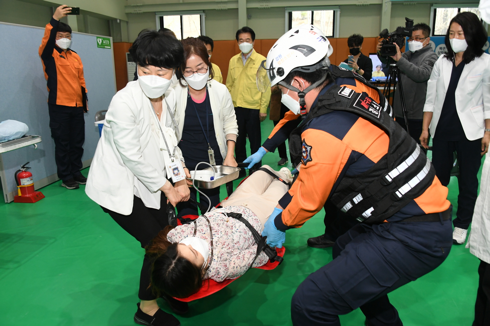 보건의료원, 군, 경찰서. 소방서, 군인 등 약 75명이 참여하는 이번 모의훈련에는 코로나19 예방접종 시행추진단장인 강효덕 부군수가 모의훈련에 참여하여, 예방접종 준비사항을 점검할 예정이다.