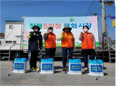 ○ 지난(4.9.) 용평면 이장연합회(회장 박창국)는 10일 열린 장평 5일장을 위한 장터 및 시가지 방역작업을 실시함.