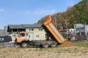○ 어제(4.13.) 용평면 업체인 (주)해인(대표 최종만)은 작년 집중호우로 토양이 유실된 과꽃조성단지에 15톤 덤프트럭(2대)를 동원하여 120톤의 객토를 지원하여 꽃밭 조성에 기반에 도움을 주었음.