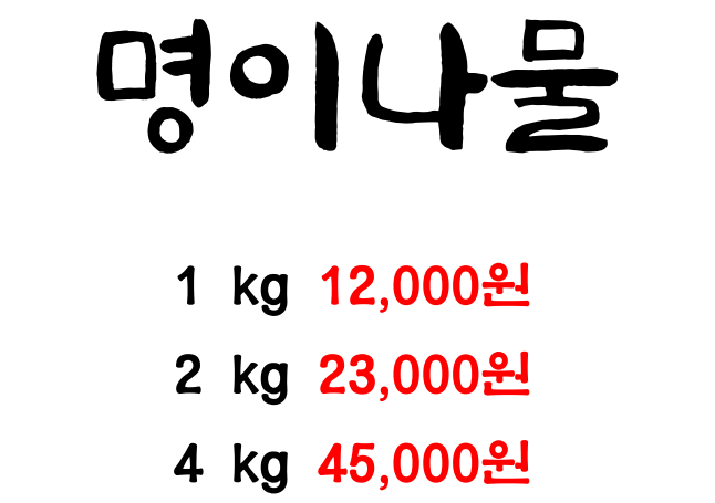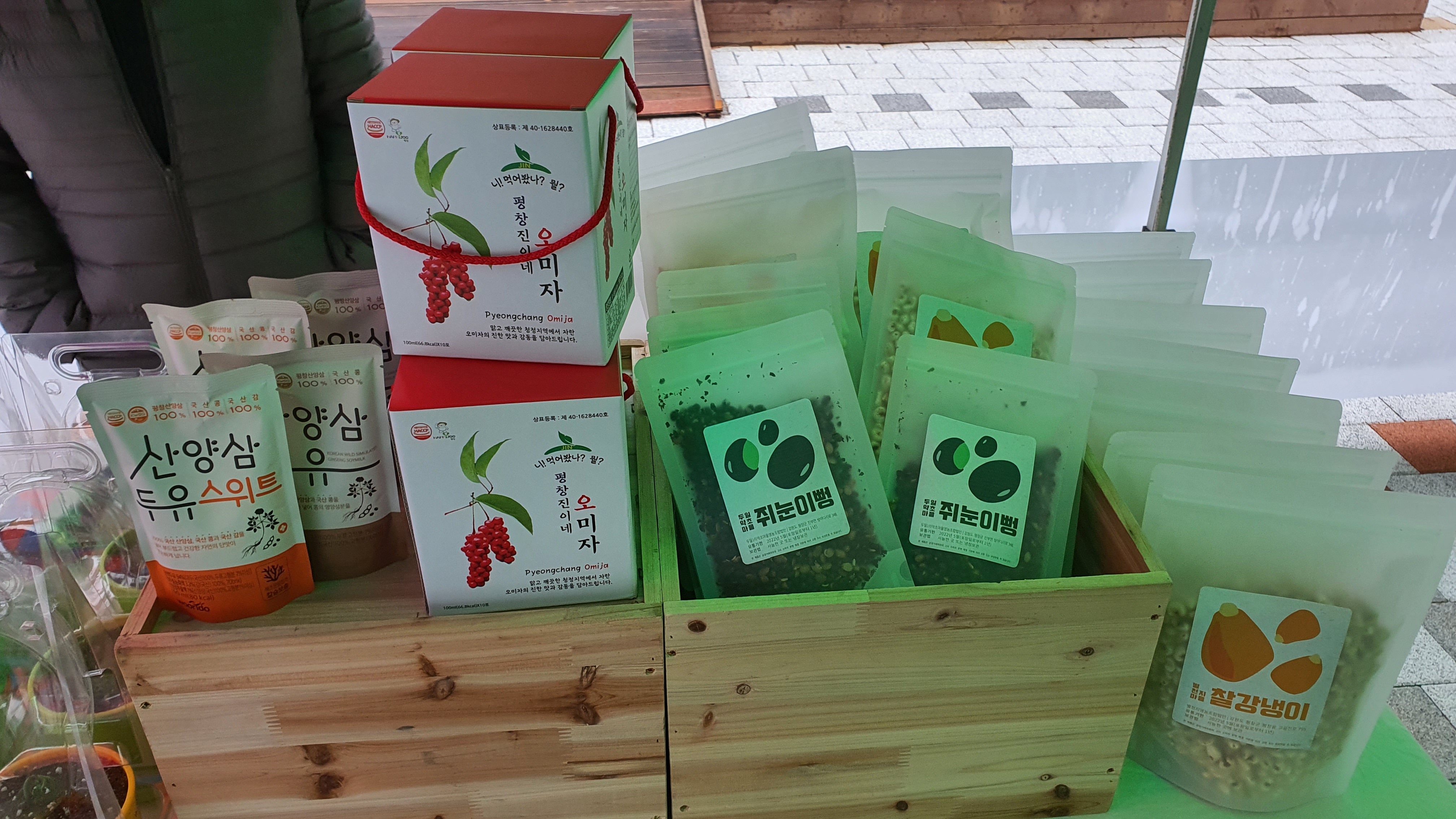 행사장에서는 다양한 평창의 봄나물을 만날 수 있다. 명이나물, 곰취, 오가피순은 1kg에 12,000원, 병풍나물은 300g에 10,000원, 참두릅은 500g에 15000에 판매한다. 산양삼은 6년근 5뿌리 십만원, 7년근 5뿌리에 십오만원에 판매한다.