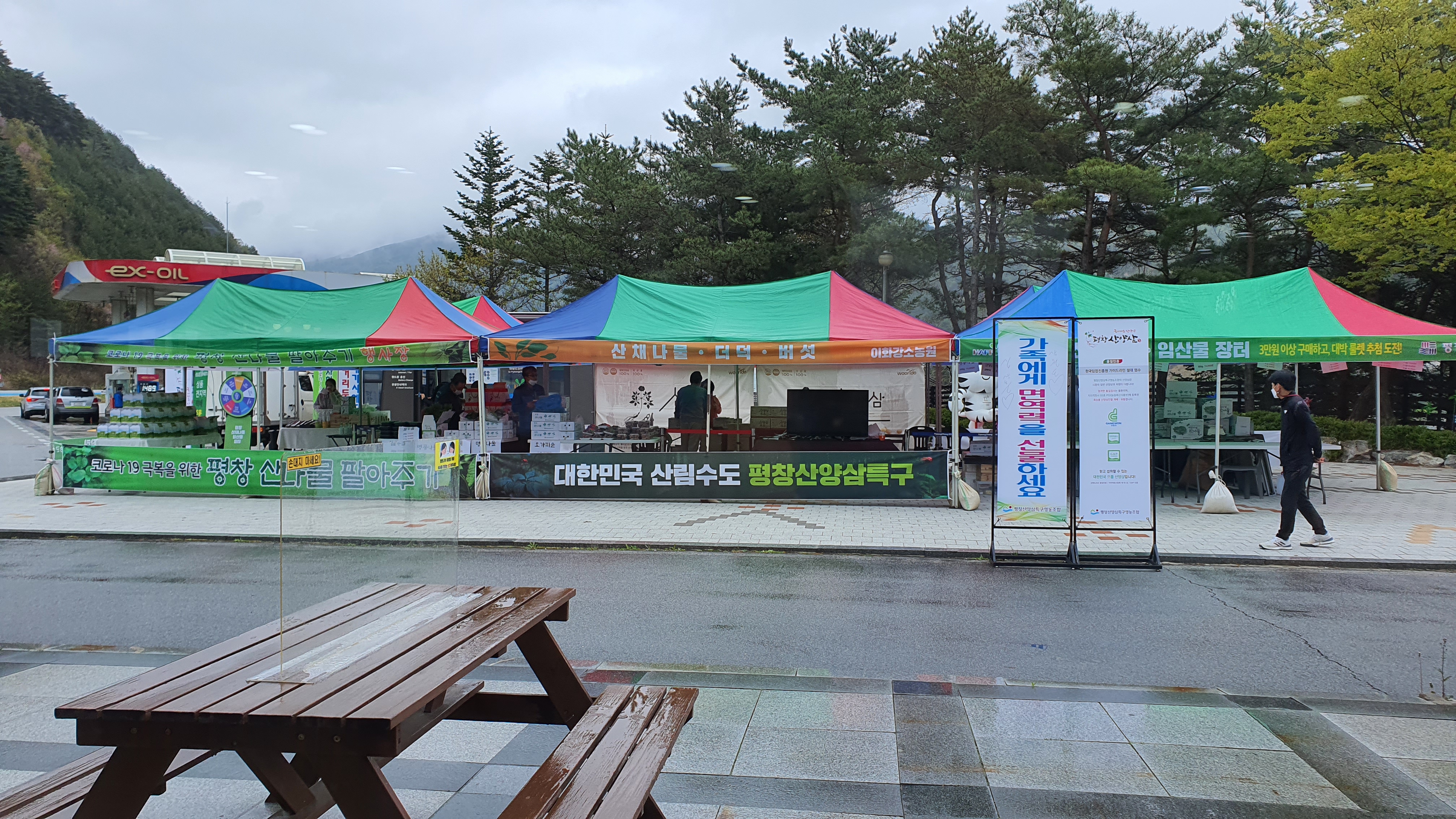 평창군 관계자는 “비가 오는 궂은 날씨이지만 제철에만 맛볼 수 있는 평창의 귀한 산나물이 준비되어 있으니 평창을 찾는 많은 분들이 이 시기를 놓치지 마시고 꼭 귀한 평창 임산물을 사 가셔서 맛보시기를 희망합니다.”고 말했다. 또 행사에 참여한 평창산양산특구영농조합법인 조성근 씨는 “경품을 통해 3만 원 이상 구매하신 분들께는 평창산삼주, 평창산양삼 등을 증정하오니 많은 참여 부탁드립니다.”고 말했다.
