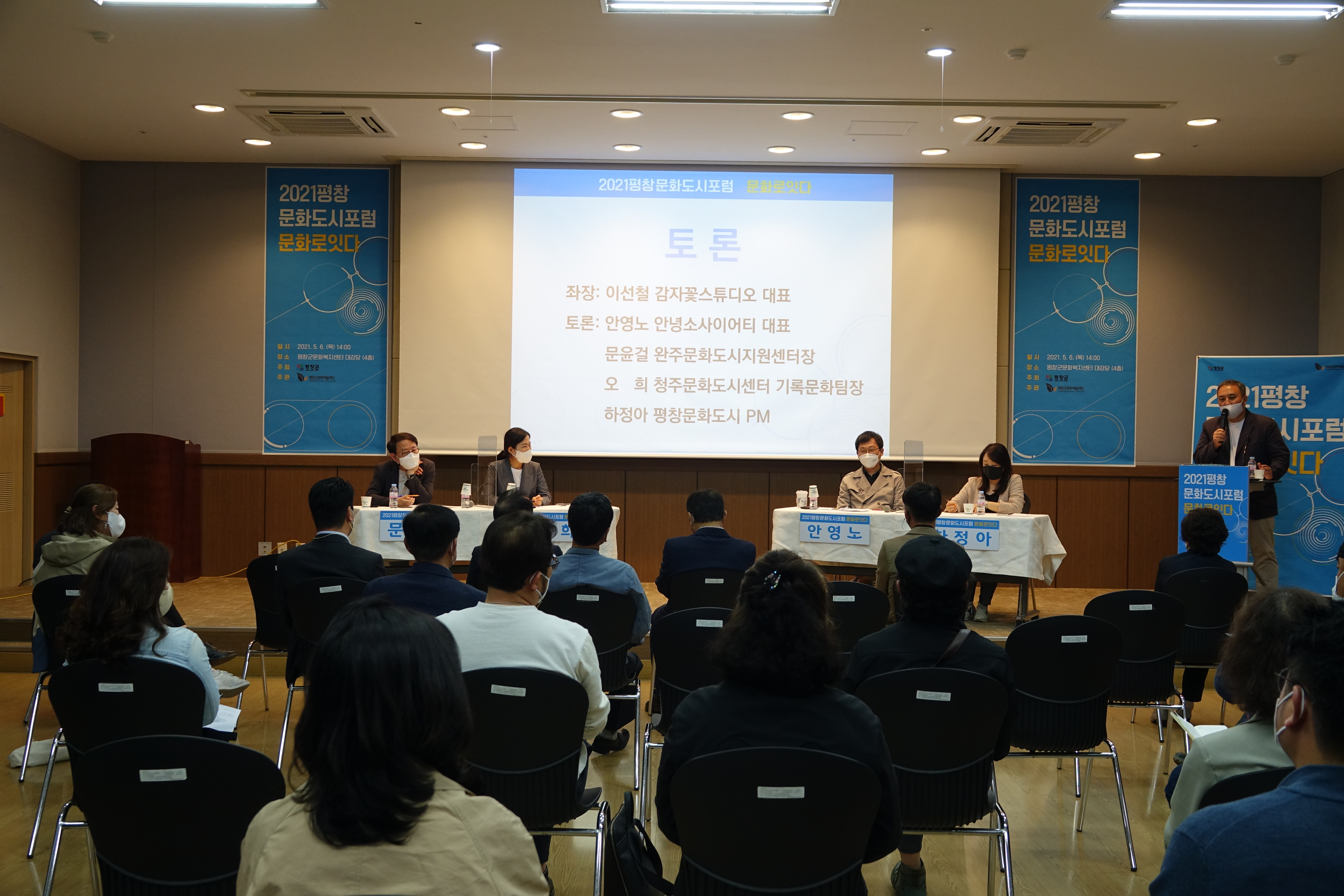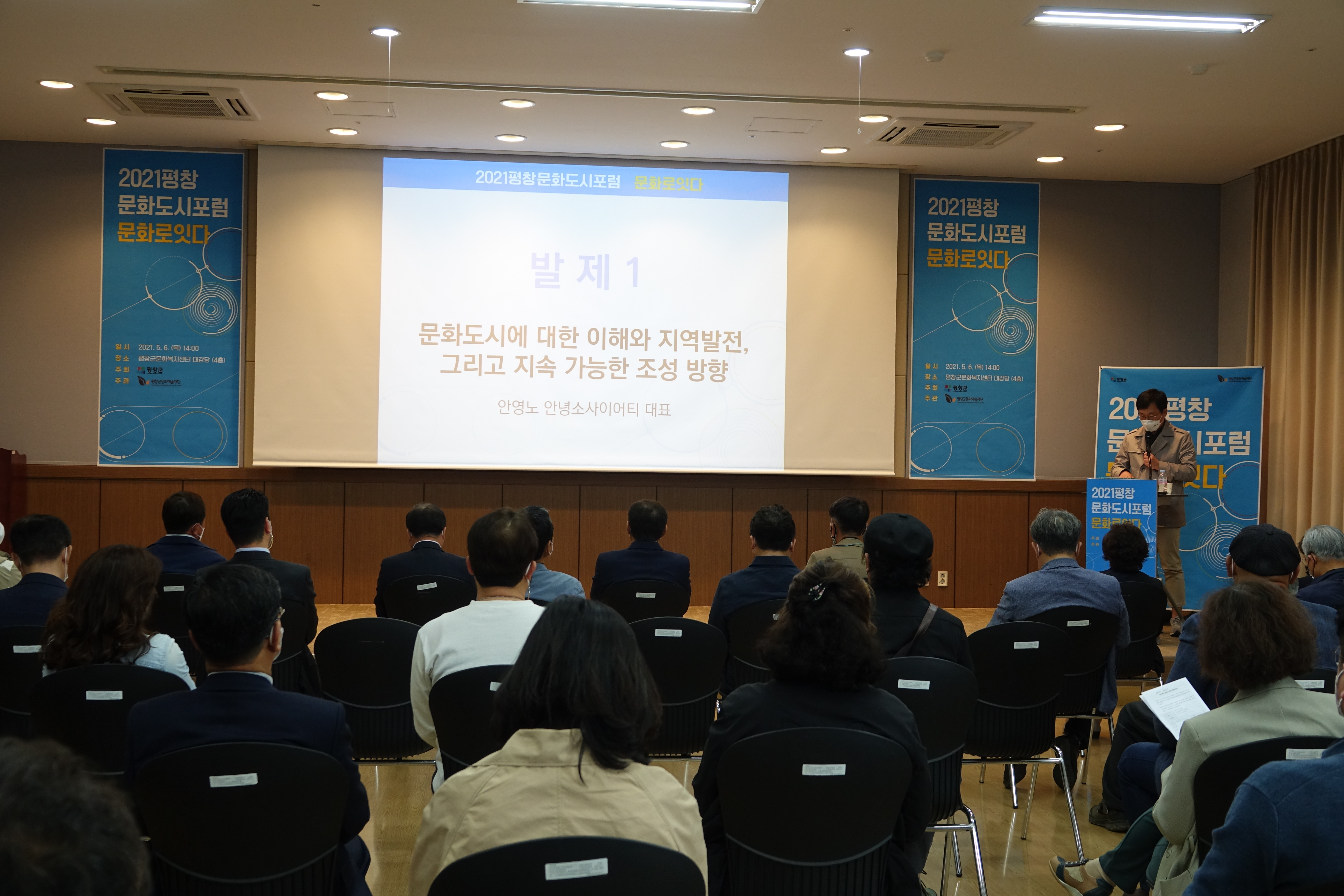 같은 날 오후 2시 평창군문화복지센터 대강당(4층)에서는 평창군 문화예술인을 비롯한 유관기관과 군민 50여명이 참석한 가운데 문화도시 전문가를 초청, 문화도시에 대한 이해와 지속 가능한 문화도시 조성방향에 대해 만나보는 시간이 마련되었다.