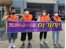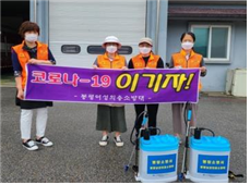 ○ 지난(5.15.) 봉평면여성의용소방대(대장 최영순) 회원 8명은 면내 상가건물, 공중화장실 등 다중이용시설에 방역봉사활동을 펼침.
