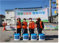 □ 용평면 여성의용소방대, 장평5일장 방역실시