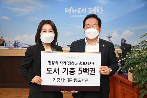 한왕기 평창군수는, “기증해주신 도서 500권은 2018년에 개관한 대관령도서관에 장서로 등록・비치되어 독서와 글쓰기에 대한 작가의 열정과 신념이 평창군민에게로 이어지는 소중한 선물이 될 것”이라고 말했다.