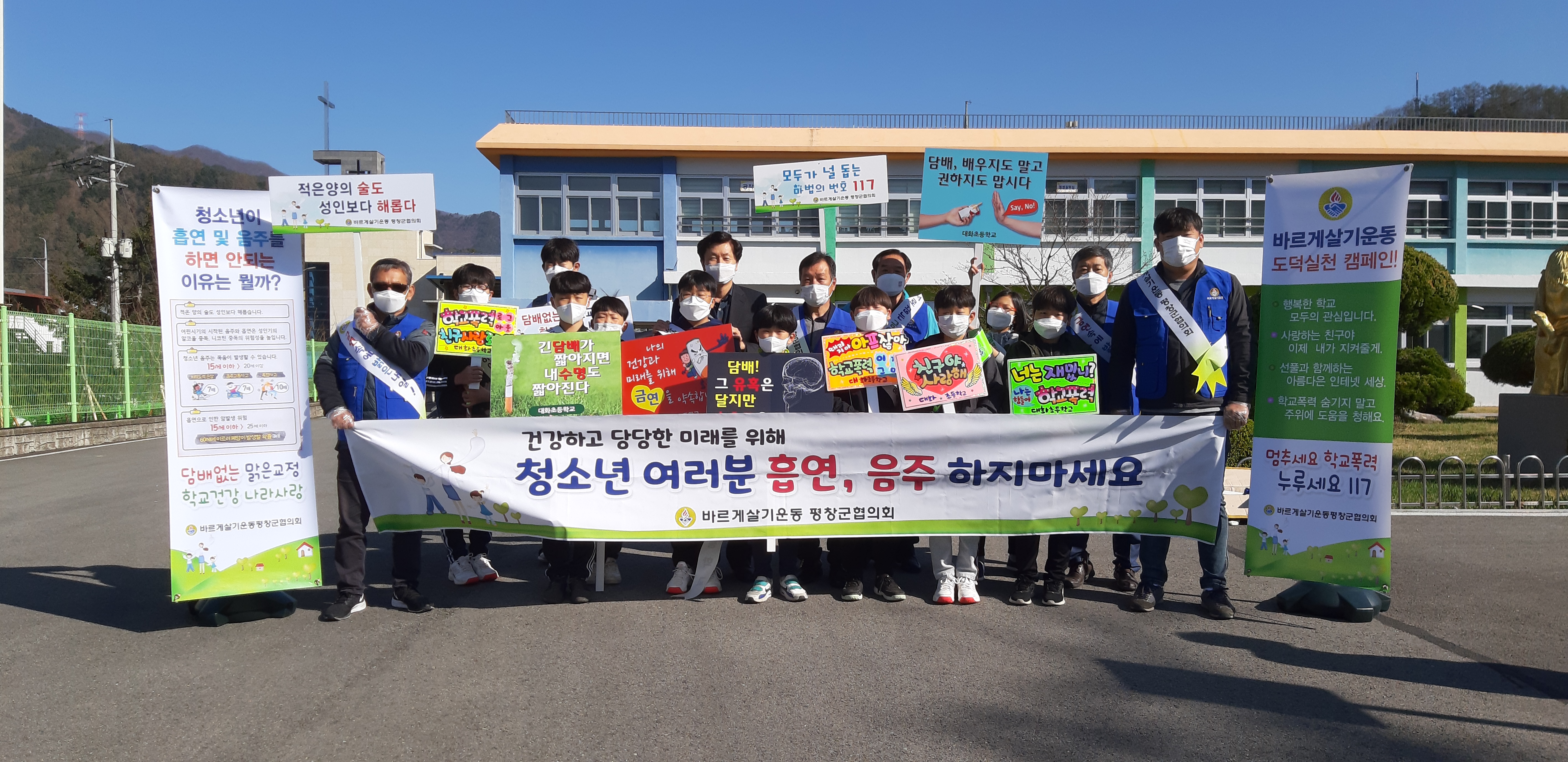바르게살기운동 평창군협의회가 2021. 4. 12.(월) ~ 5. 12.(수)까지 평창군 관내 초ㆍ중ㆍ고등학교를 방문하여 등굣길에 학교폭력ㆍ음주ㆍ흡연 예방 캠페인을 전개하였다.