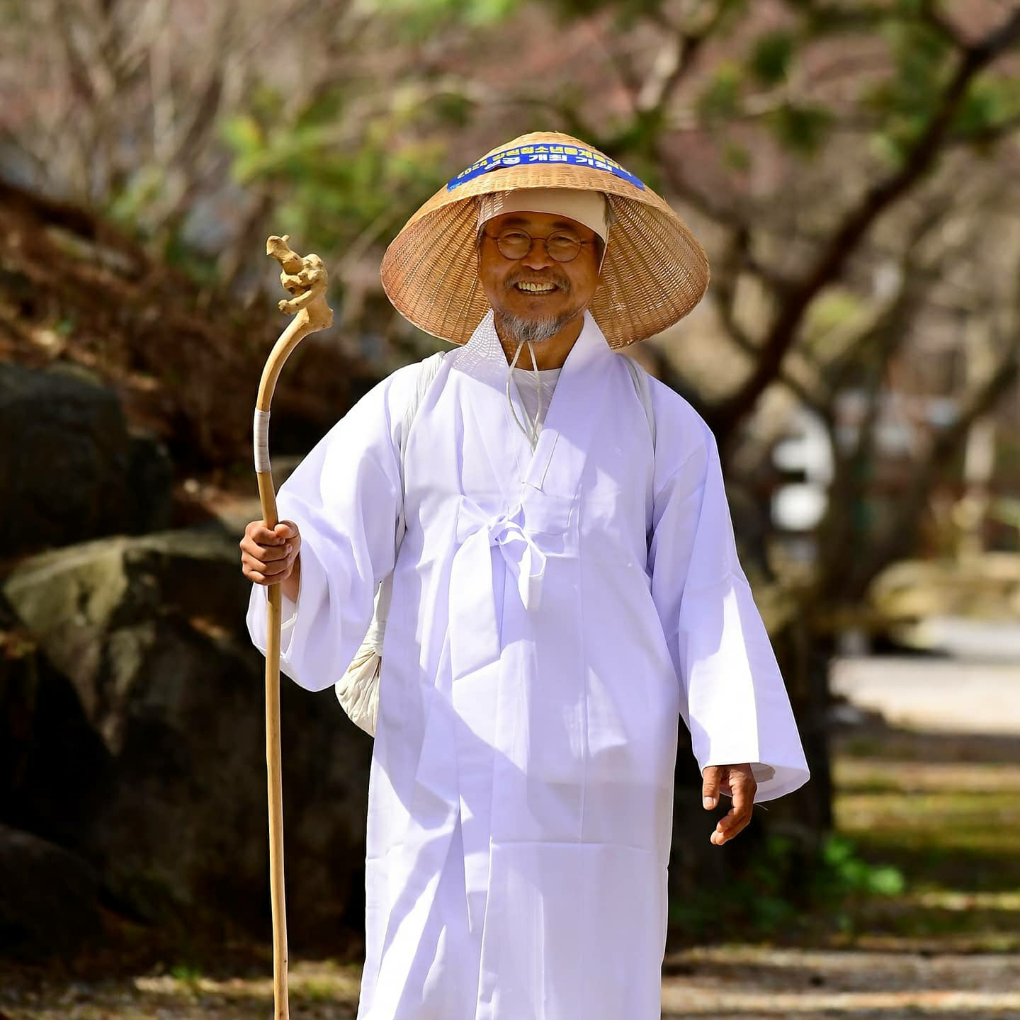 첫날부터 발에 물집이 생기서 터지는 고생을 했지만 2주가 지난 지금은, 쓰라리던 상처에 새살이 돋아나 굳은살로 변했다. 밤잠은 차에서 자고 식사는 시골 주막이든 횟집이든 발길 가는 곳에서 해결한다.  한복에 삿갓을 쓰고 누런 속살을 드러낸 구부러진 나무 지팡이는 손잡이가 힘겨워 보인다. 바랑 끝에 매달려 떨어질  흔들거리는 짚신  켤레가 안동김씨 김삿갓의 후예임을 알려준다.