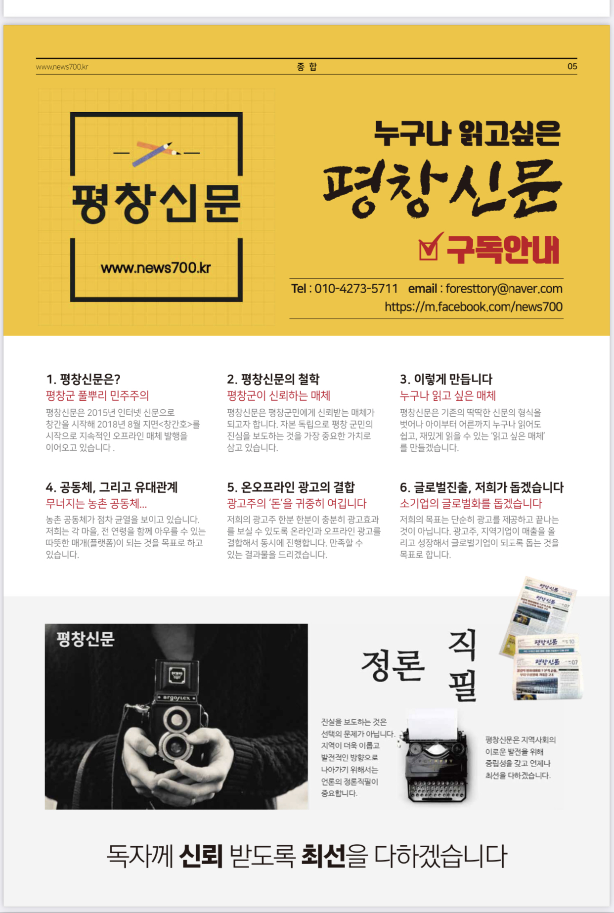 코로나19로 운영의 어려움으로 인해 5월은 월2회 발행에서 1회 발행을 하게되었습니다. 독자여러분께 양해의 망말씀을 드립니다.