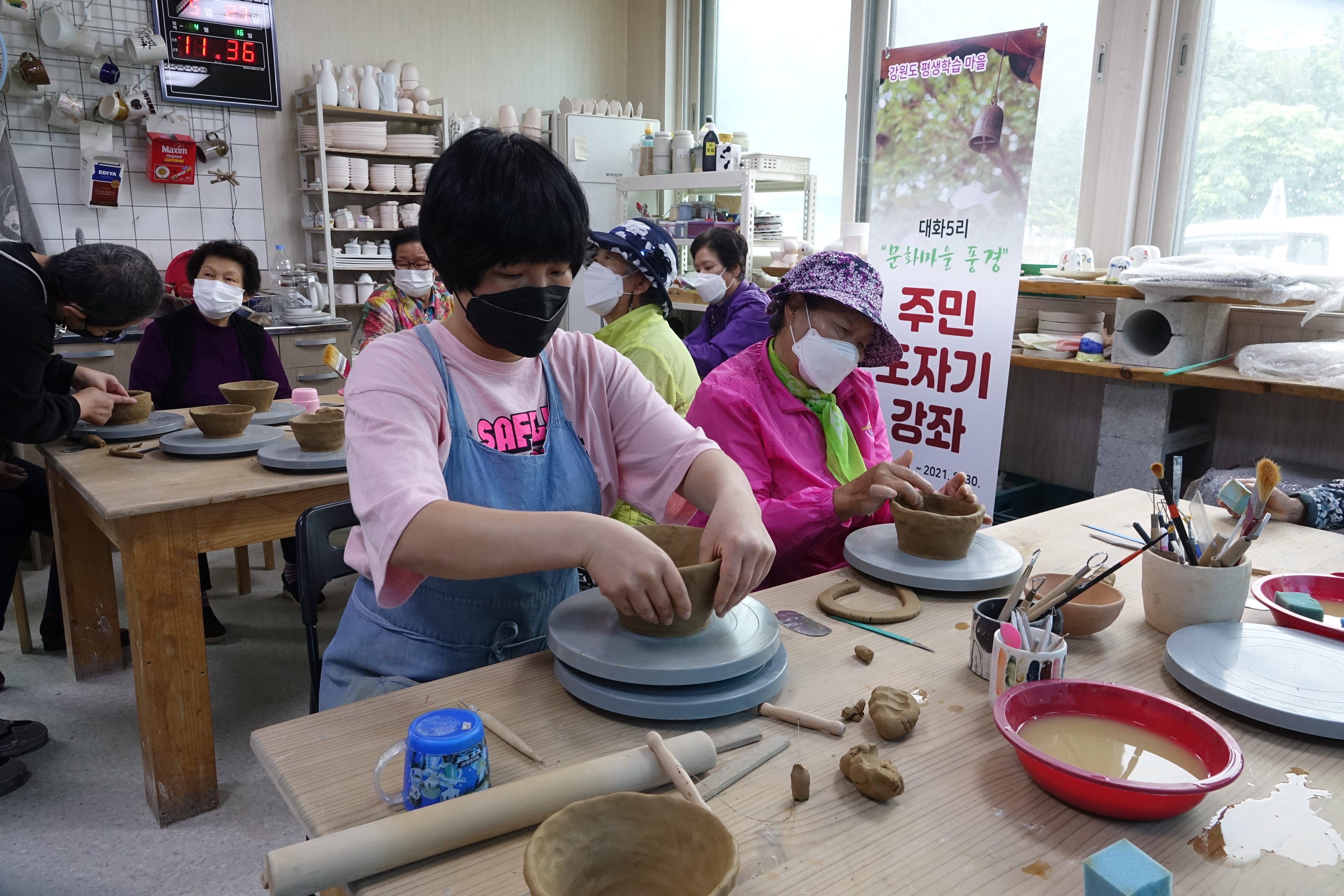 도자기 강좌는 주민들에게 코로나로 갇힌 지난 1년간의 갑갑함에 대한 한줄기 단비가 되어주고 있었다. 아이들부터 어르신들까지 마을의 전 연령대가 참여하는 평생학습 공모사업은 대화5리 김지영씨 등 젊은 사람들의 제안과 마을 함승호 이장, 부녀회장의 적극적인 협력도 큰 몫을 차지했다.