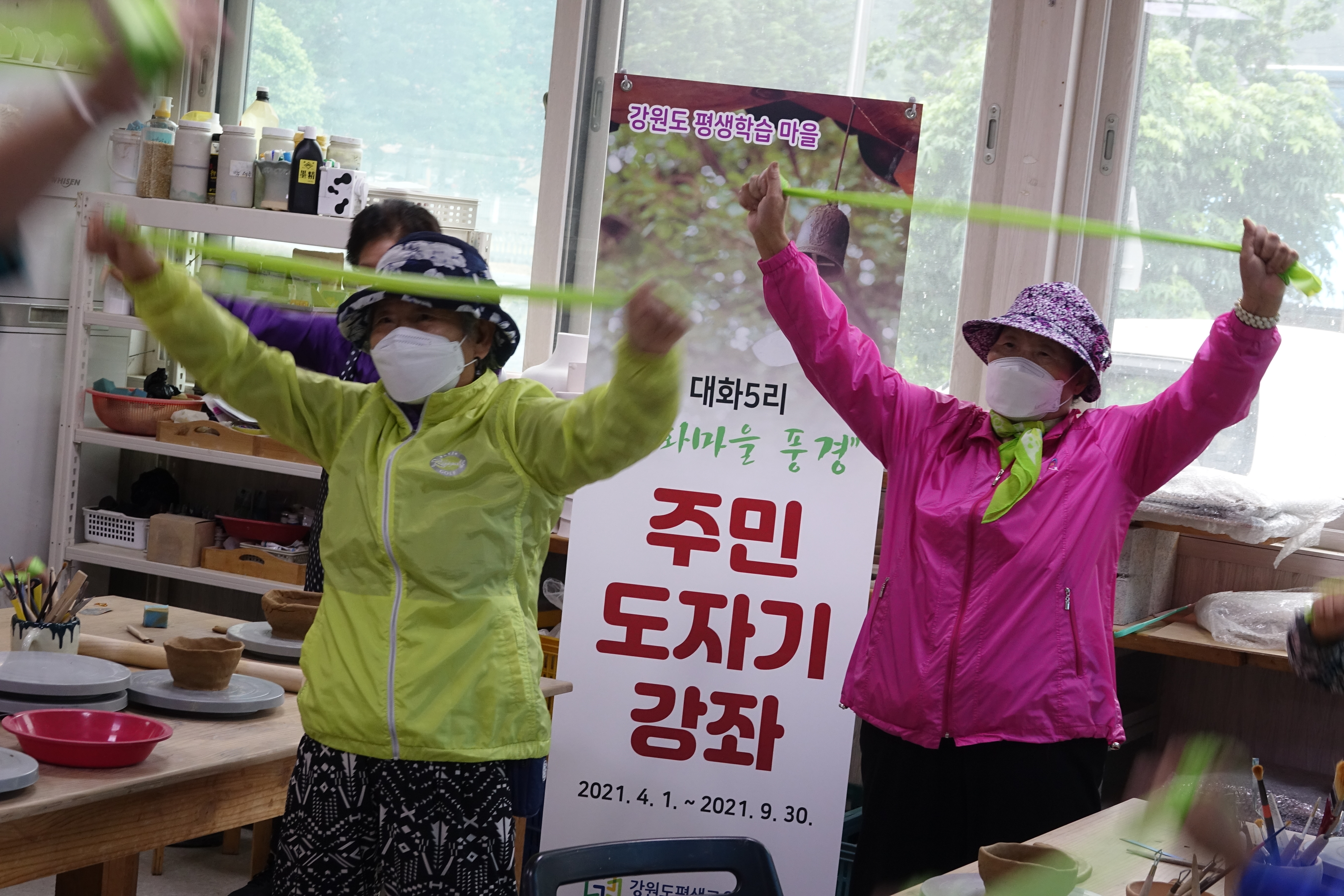 27일은 대화5리 노인회를 대상으로 마을 도자기 수업을 진행했다. 수업에 참여한 대화5리 노인회 유지득 어르신은 "놀기 심심한데 모여서 하니까 좋습니다. 손도 놀리고 운동도 되고요."라고 소감을 말했다.