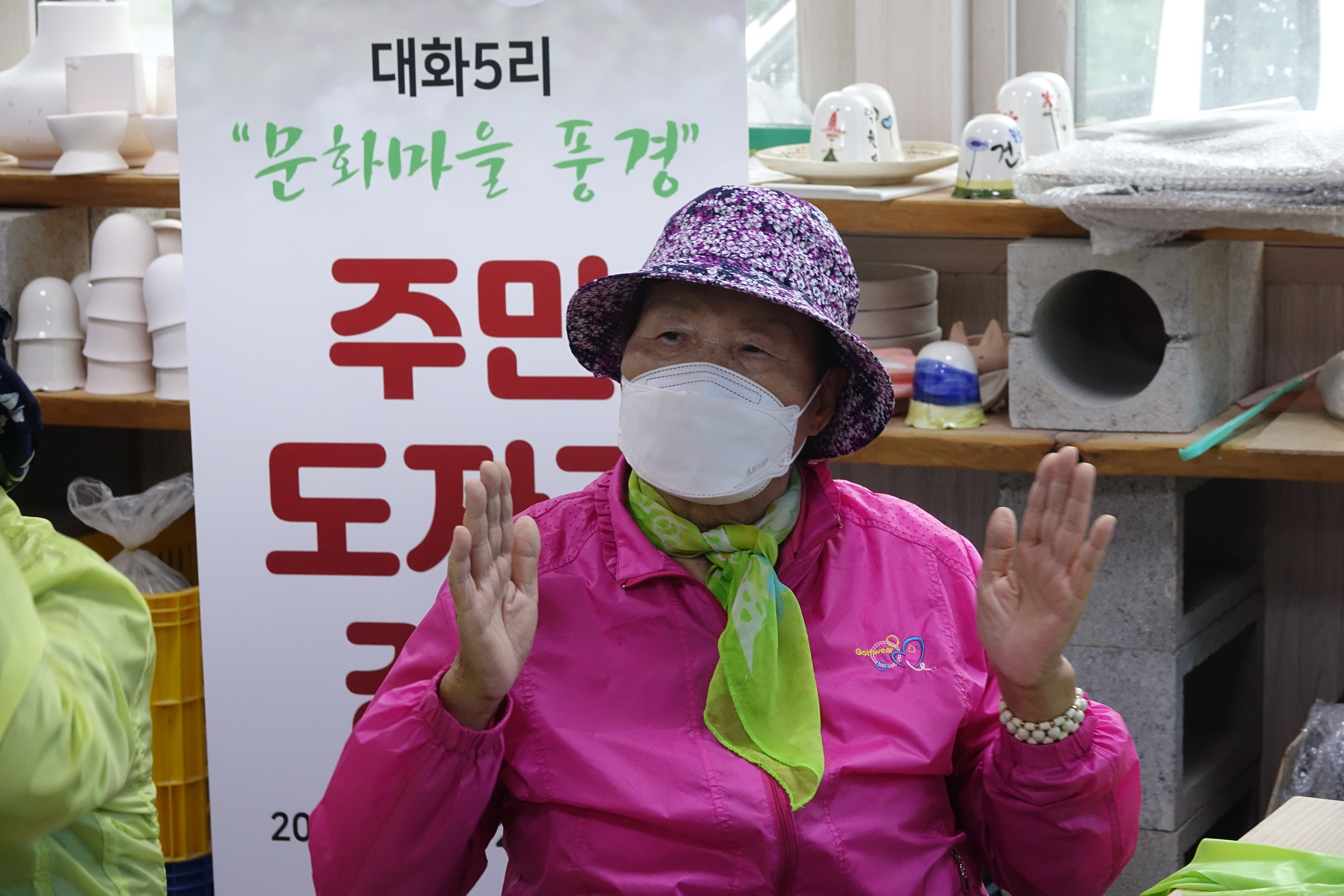 대화5리 이덕현 노인회장은 "코로나19 때문에 회관에도 못 모이고 어른들이 많이 힘들었어요. 올해는 도자기 공방도 하고 여러가지 문화생활을 할 수 있어서 너무너무 반갑고요 코로나가 얼른 종식되어서 회관에 모여서 같이 놀고 이랬으면 좋겠습니다."라고 소감을 말했다.