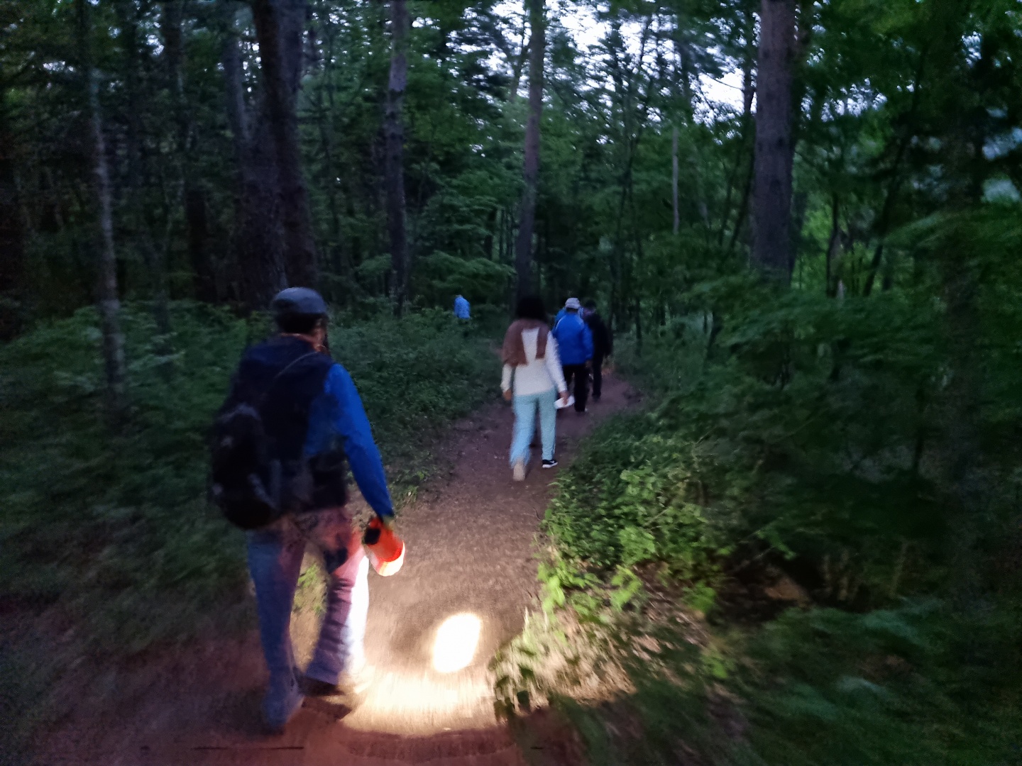 저녁7시 월정사요양원앞 주차장 (동산리 마을회관 또는 산수명산 식당 근처)에서 시작해 번뇌의 숲(1.5km) ->전나무숲 길 (1.9km) ->명상+상엄스님 말씀 ->걷기(1.5km) ->주차장까지 돌아오는 행사를 통해 수강생들은 걷기 뿐만 아니라 명상을 통한 자기 자신을 되돌아 보는 시간을 가졌다.