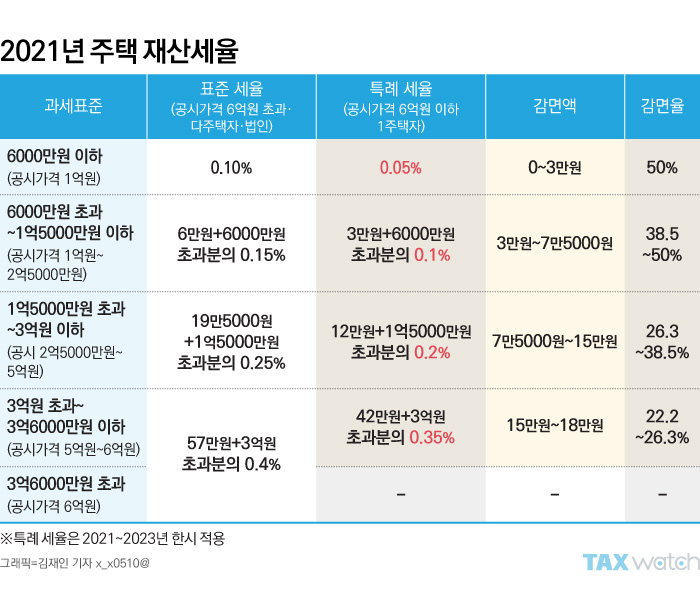 평창군은 올해 61일을 기준으로 1세대 1주택자가 소유한 공시가격 6억 원 이하 주택분 재산세에 대해 과세표준 구간별로 0.05%p씩 인하한다고 밝혔다.