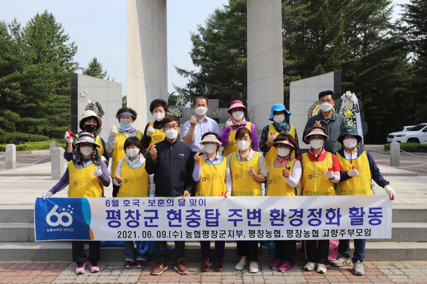 농협평창군지부(지부장 최두헌)와 평창농협(조합장 정연택), 평창농협 고향주부모임(회장 김순옥)과 회원10여명은 평창군 현충탑 주변 잡초 제거 등 환경정화 활동을 펼쳤다.