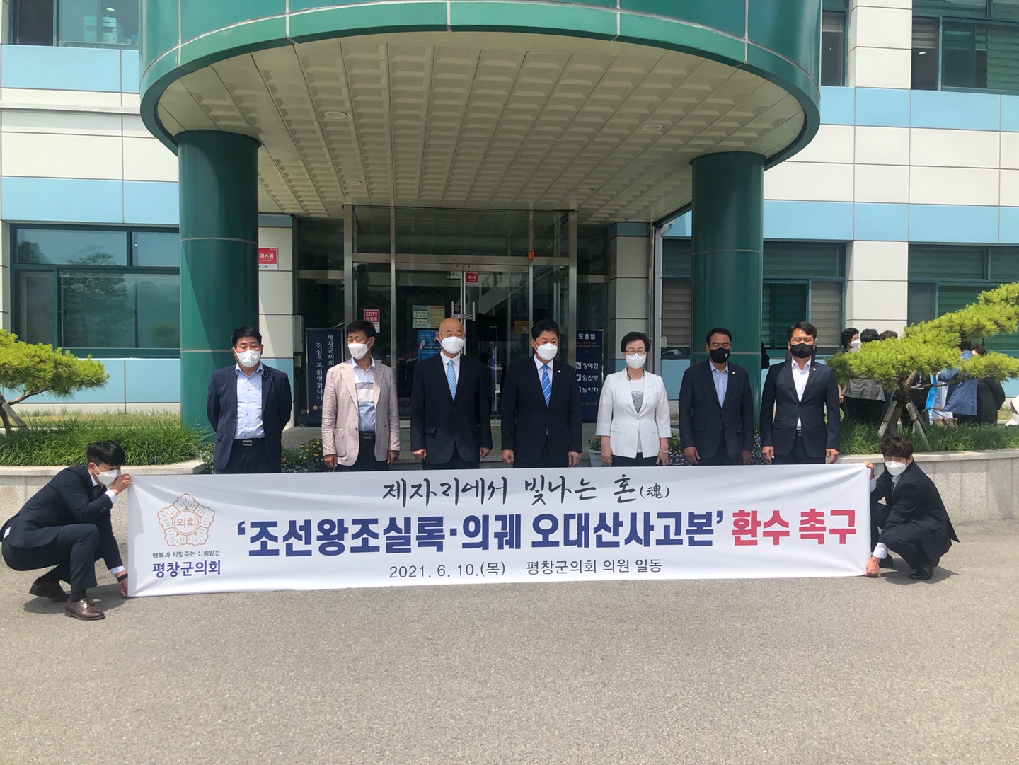 민족의 근간인 역사 기록물을 본연의 혼(魂)이 담긴 본래의 제자리로 환수하여 분산보관의 역사성과 선조들의 우수한 정신의 가치를 국민과 공유하고 기록유산을 후손에게 널리 알리고자 한다. 이에 평창군의회에서는‘조선왕조실록·의궤 오대산사고본’을 조속한 시일내에 제자리에 돌려줄 것을 촉구한다.