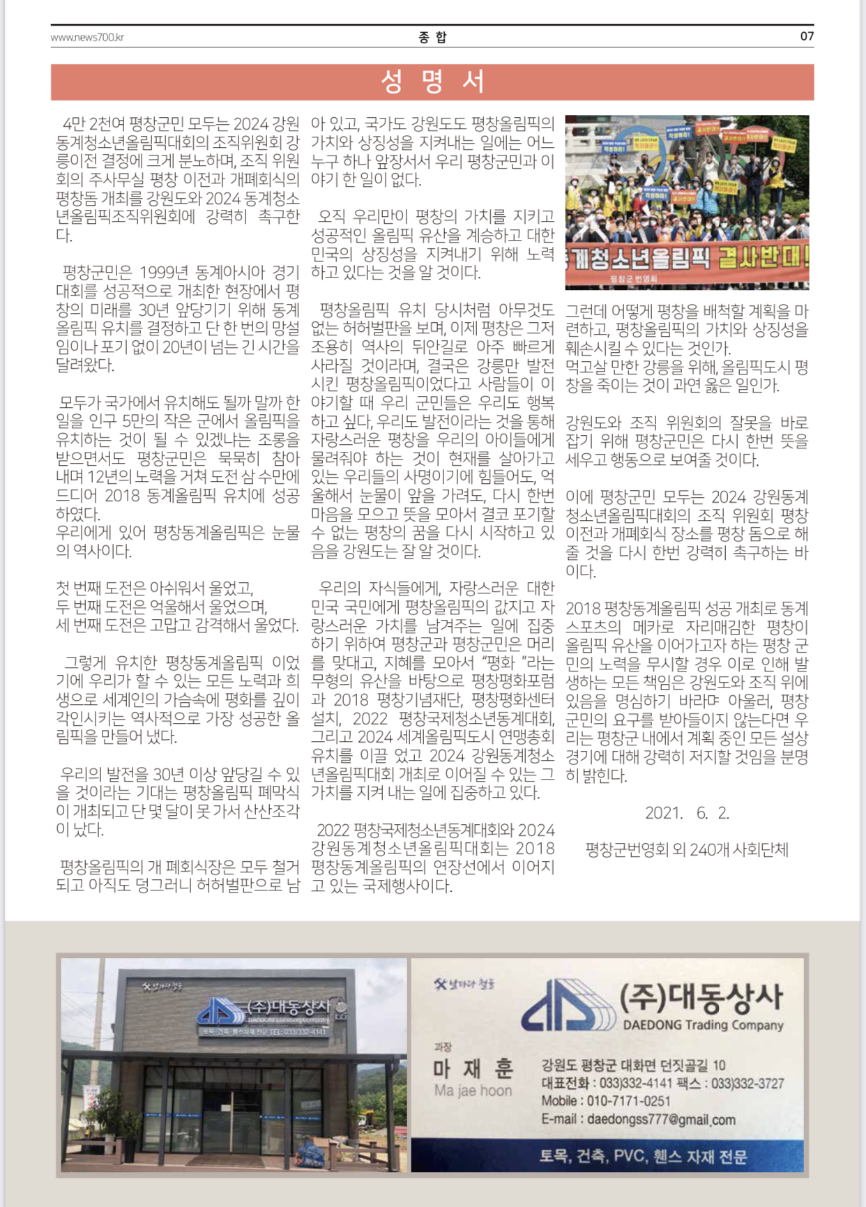 평창신문 12호 - 2021년 6월 2주