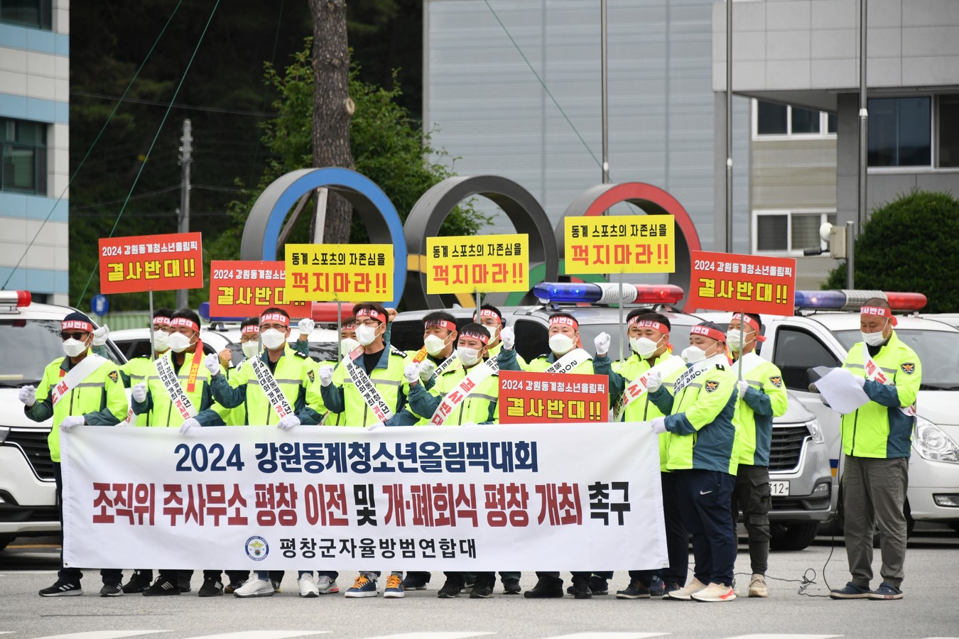 이에 우리 평창군자율방범연합대 모든 구성원은 평창군민과 더불어 이번 사안을 함께 할 것을 강원도와 조직위원회에 강력히 천명한다. 우리 모두의 뜻을 전한다. 2024청소년동계올림픽의 주사무소 평창 이전 설치 및 개ㆍ폐회식 평창개최를 강력히 요청하는 바이다.