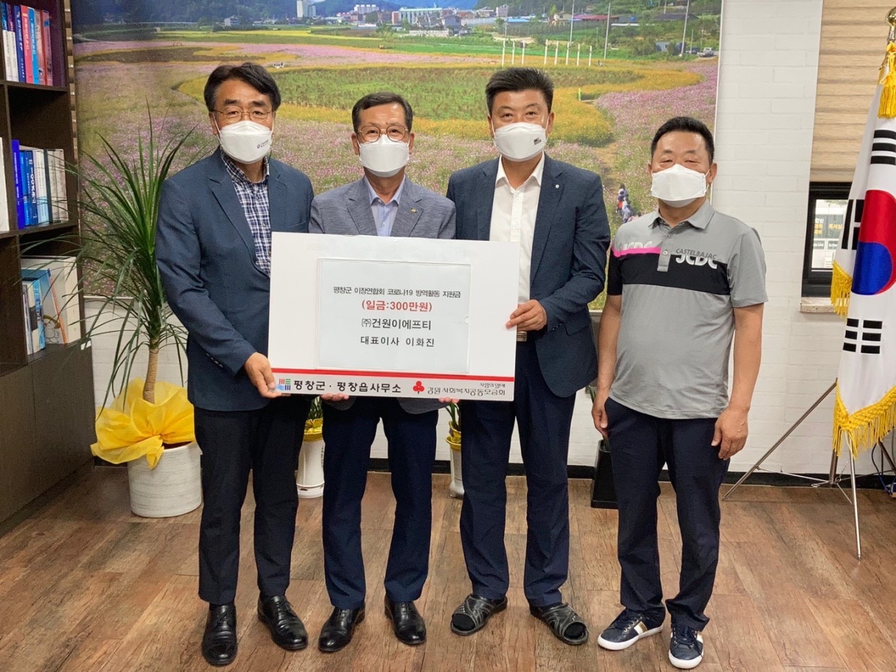 17일) ㈜영재산업건설(대표 김영국)은 코로나19 방역활동에 힘써 달라며 평창군 이장연합회 마을방역단에 지원금 100만원을, 건원이에프티(대표 이화진)은 300만원을 전달했다.