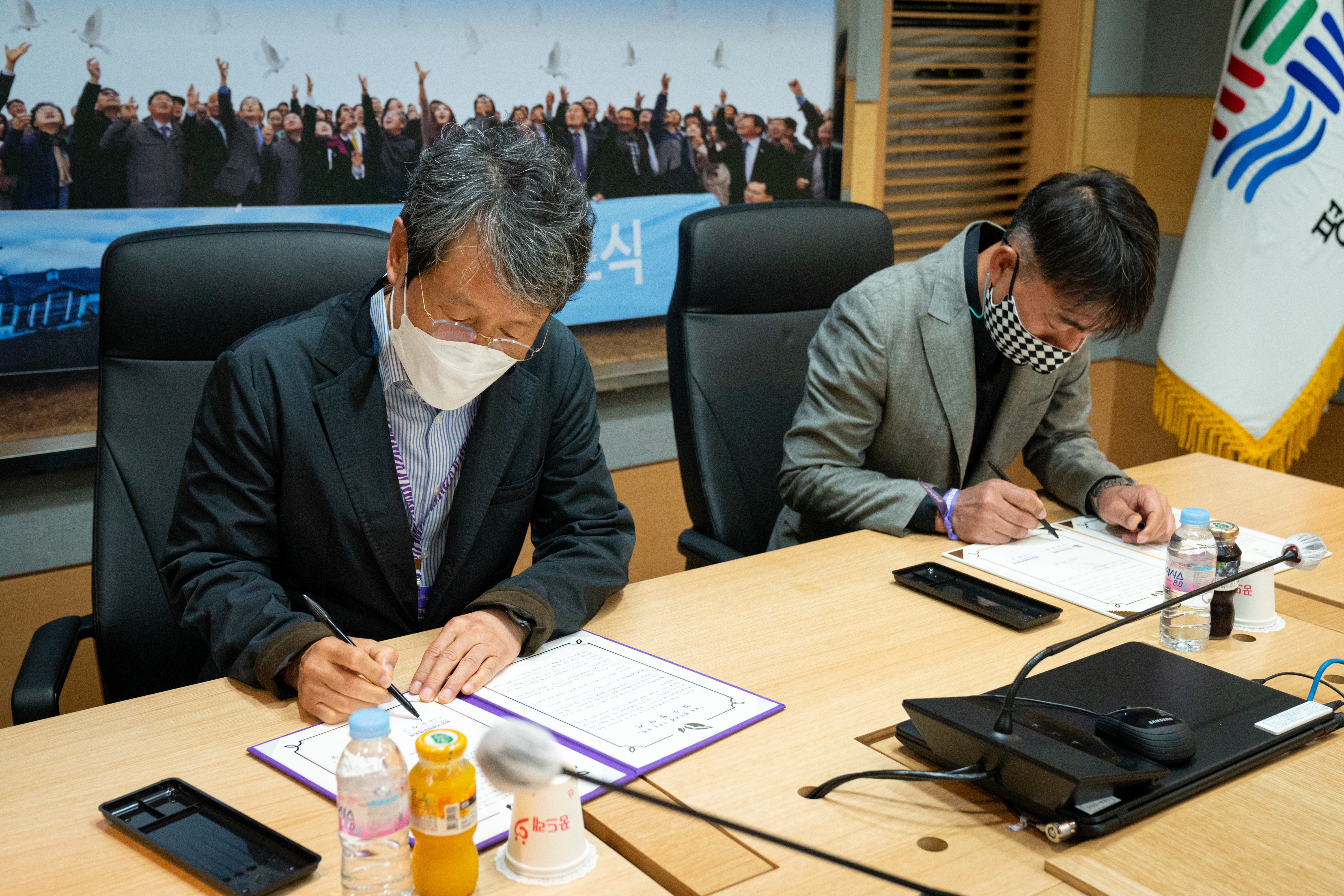 19일 평창군청 소회의실에서 평창군문화예술재단 김도영 이사장과 평창국제평화영화제 문성근 이사장은 지역발전을 위한 문화예술적 가치창출과 평창국제평화영화제의 지속적인 성장·발전을 위한 MOU를 체결했다.
