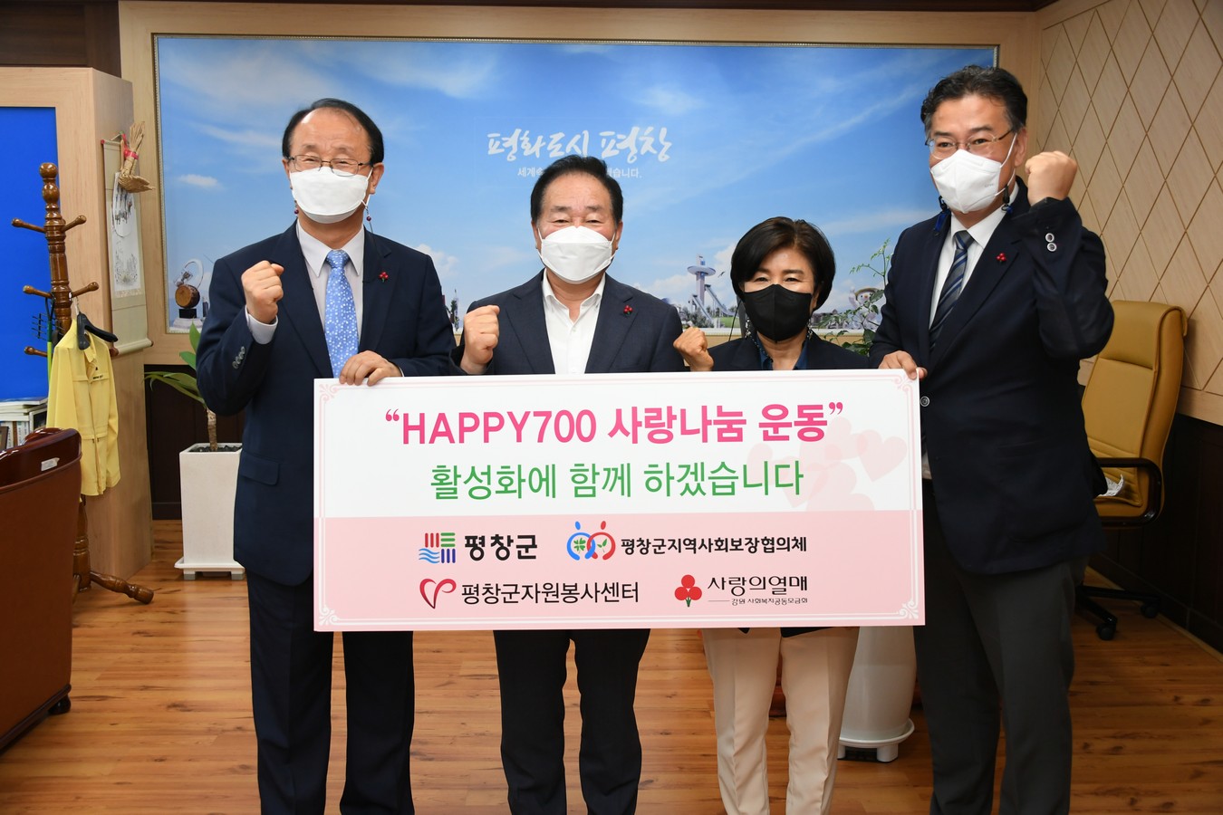 평창군은 21일 군수 집무실에서 HAPPY700사랑나눔운동 참여를 범군민운동으로 선포하고, 업무협약 체결 후 본격적인 추진에 들어간다고 밝혔다.