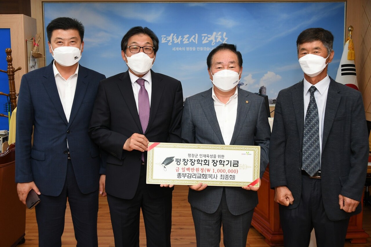 재)평창장학회 이사장인 한왕기 평창군수는 “코로나19 여파로 교회의 경제적 여건도 어려운 상황에서 지역 학생들을 위하는 마음에 감사드리며, 기탁하신 장학금은 학생들이 희망을 잃지 않고 꿈을 향해 나아갈 수 있도록 소중하게 사용하겠다.”고 말했다.