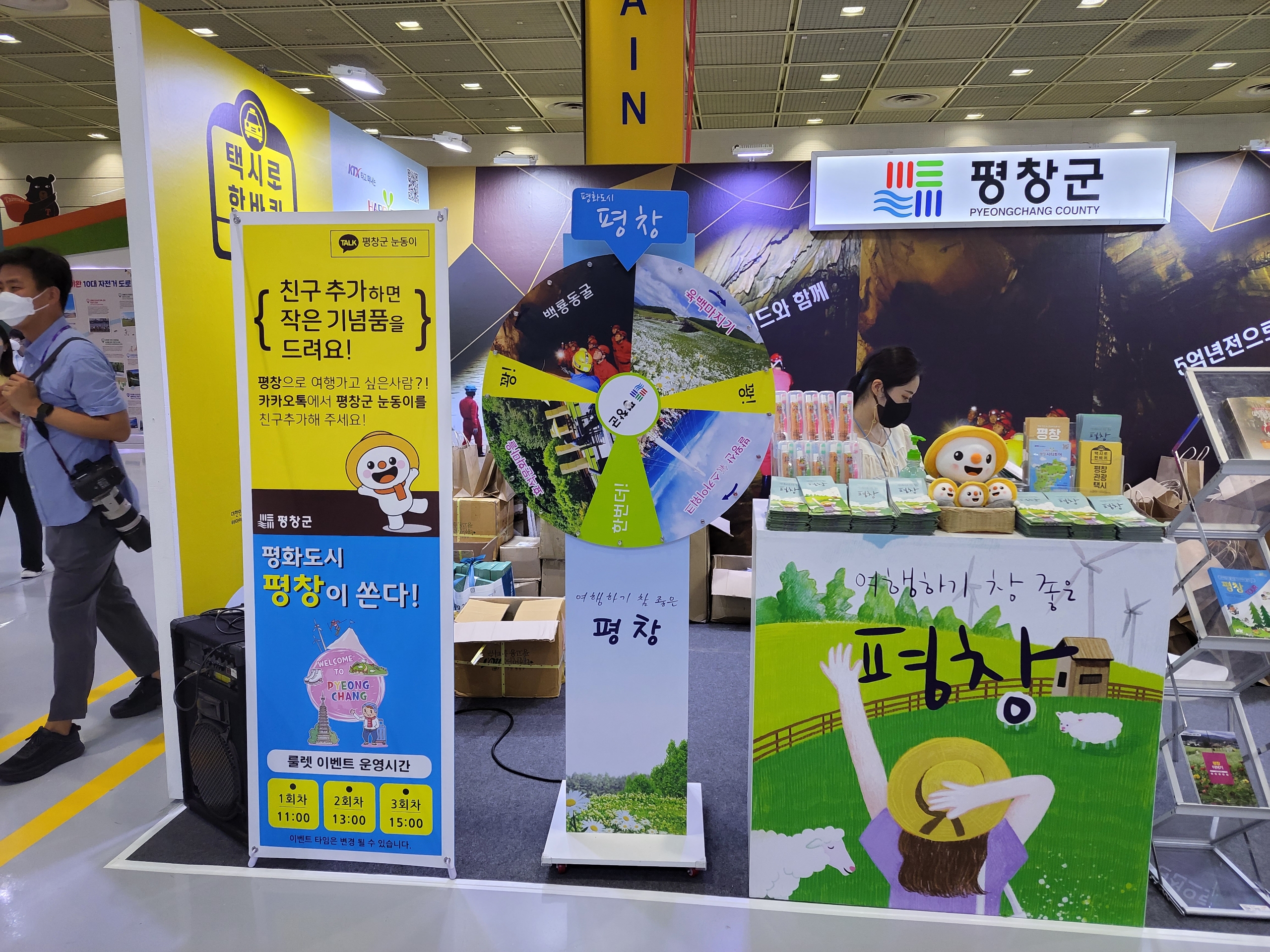 평창군은 이벤트 실시와 평창군 명예관광안내사인 ‘눈동이’를 활용하여 평창군 부스로 방문객을 유도하고, ‘평창시티투어・관광택시’등과 같은 관광사업과 청정·힐링·치유 등 웰니스관광과 안심관광지로서의 평창을 적극 홍보하고 있다.