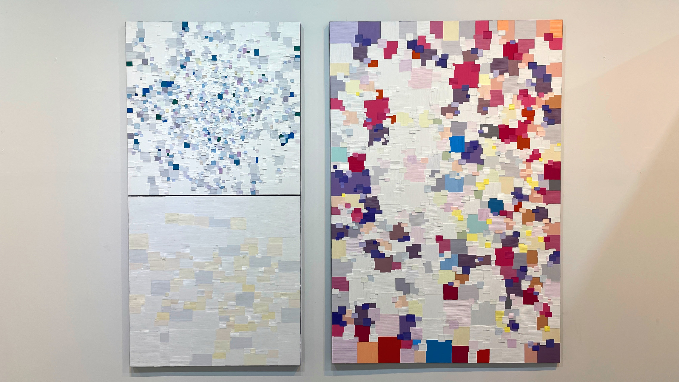 “이 새로운 Pixels of Paintings 시리즈는 실을 직 간접적으로 퍼지는 개념으로 설명을 합니다.