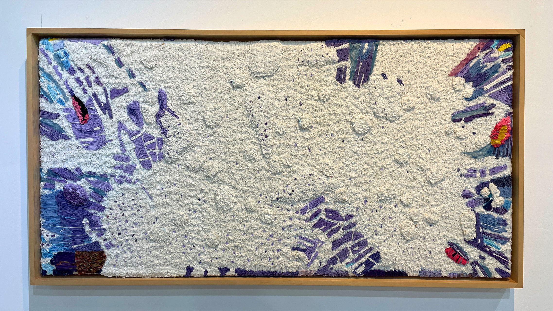 “ 자연의 이미지가 화면 위에서 강박적인 테크닉으로 처리되거나 띠모양의 천을 넓이, 두께, 밀도를 달리하여 바느질한 천을 풀어서 섬세한 색깔의 변화를 유도하였으며 풀어진 천의 올이 부드럽게 섞여서 갖가지 표현의 시각과 촉각의 풍성함과 단조로운 공간에 생명력을 불어 넣어준다.”