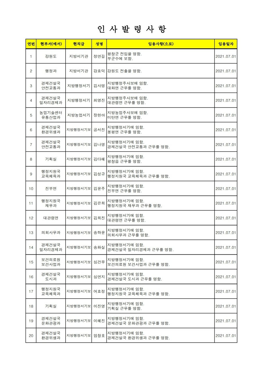 평창군, 코로나19 한시생계지원 1억 7,520만원 지급