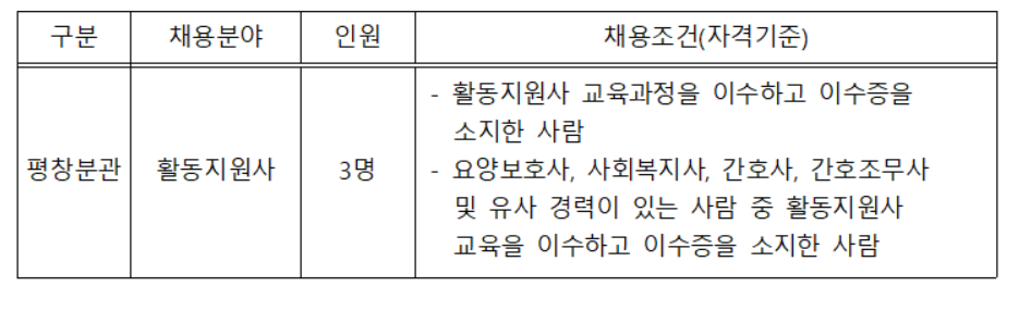 장애인활동지원사 모집 (강원도장애인종합복지관 평창분관)