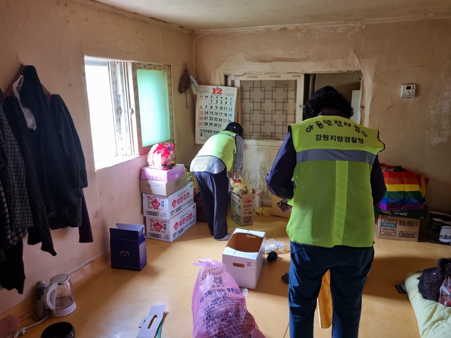 평창군 진부면은 이달 초 진부파출소(소장 백영세) 아동안전지킴이가 장애로 주거환경이 열악하고 일상생활이 어려운 기초생활수급자 가구를 방문해 집안 대청소 봉사활동을 하였다고 밝혔다.