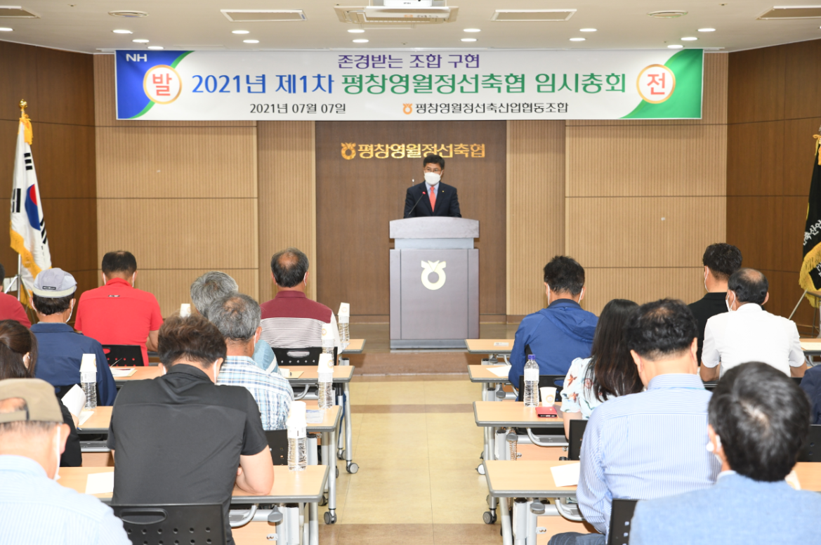 평창영월정선축협(조합장 고광배)에서는 금일(7/7) 오전 11시, 본점 종합청사(평창읍 백오로 9)에서 2021년 제1회 임시총회를 임원 및 대의원 100여명을 모시고 실시했다고 밝혔다.