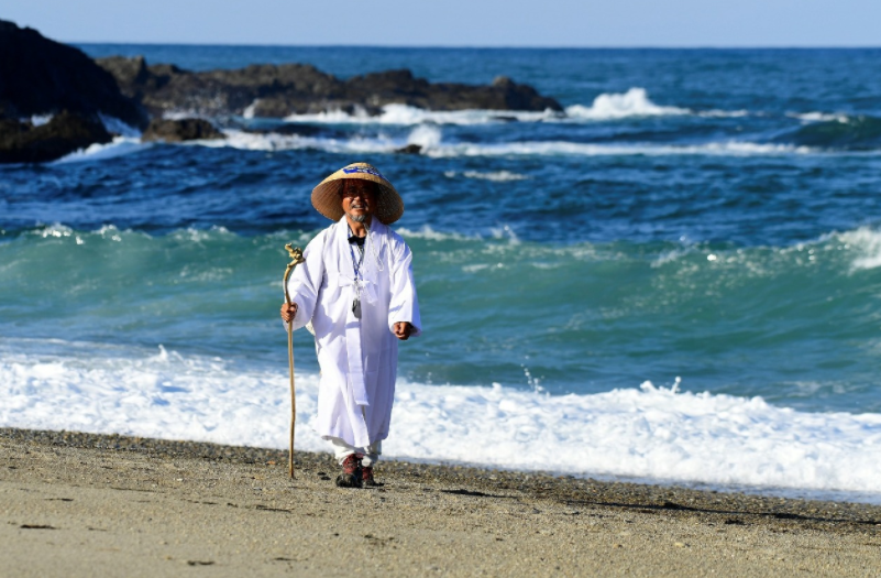 첫날부터 발에 물집이 생겨서 터지는 고생을 했지만 완주를 한 지금은, 쓰라리던 상처에 새살이 돋아나 굳은살로 변했다. 밤잠은 차에서 자고 식사는 시골 주막이든 횟집이든 발길 가는 곳에서 해결했다.  한복에 삿갓을 쓰고 누런 속살을 드러낸 구부러진 나무 지팡이는 손잡이. 바랑 끝에 매달려 떨어질  흔들거리는 짚신  켤레가 안동김씨 김삿갓의 후예임을 알려주었다.