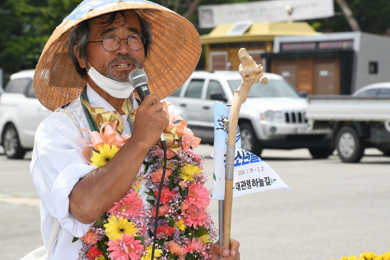 김영교씨, 2024강원동계청소년올림픽 성공개최 기원 전국도보일주 완주에 군민들 환영 이어져