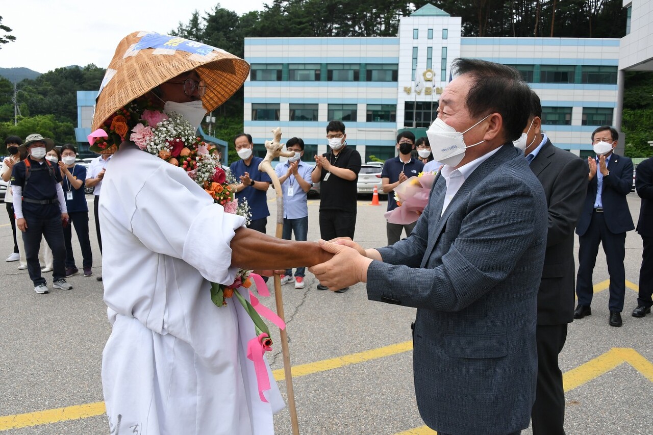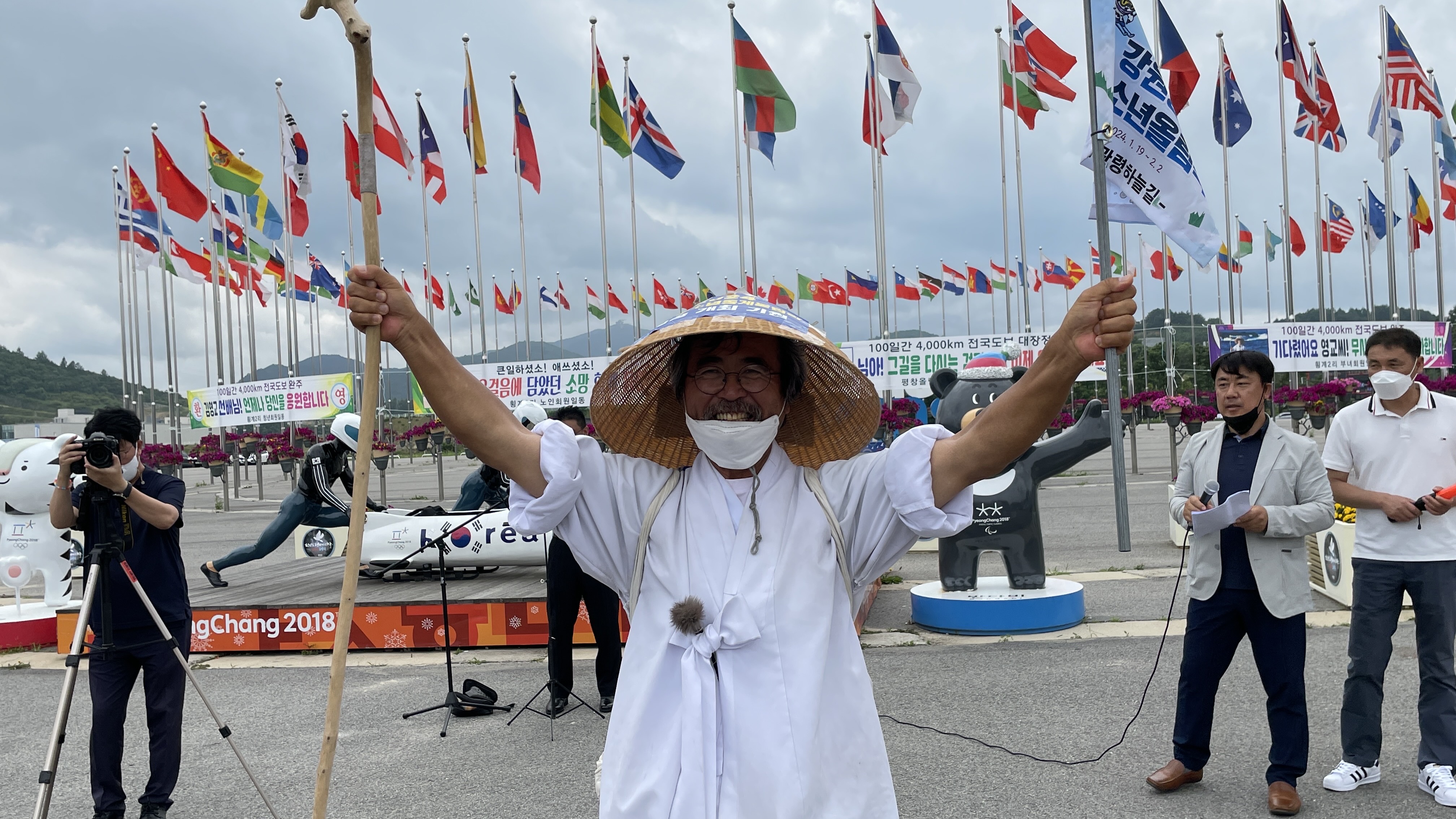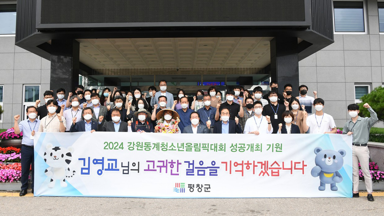대관령 스키 역사 박물관장 김영교씨의 2024강원동계청소년올림픽 성공개최와 조직위원회 사무소 평창이전 및 올림픽유치기념관 걸립등을 기원하며 실시한 100일 동안 4,000km 전국도보일주가 지난 7일 98일만에 평창군에 도착하면서 성공리에 완주했다. 군청앞에서 한왕기 군수와 군청 직원들의 환영을 받았다. 지역주민들의 환영도 이어졌다. 9일 오후 대관령면 올림픽프라자에서 주민 150여 명이 함께한 가운데 환영행사가 진행되었다.