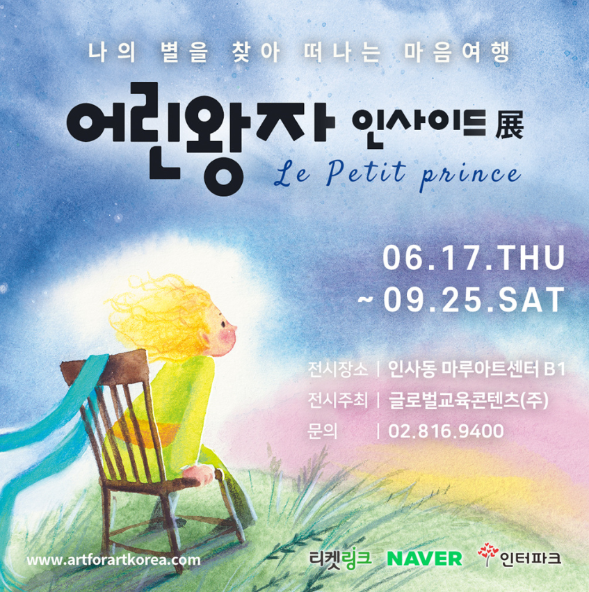 프랑스 소설가 ‘앙투안 드 생텍쥐베리’의 동화 어린왕자를 테마로 2021년 6월 17일(목) ~ 9월 25일(토)까지 서울 인사동 마루아트센터 특별관에서 "어린왕자 인사이드展" 전시를 진행하고 있다. '어린왕자'는 전 세계 250개 언어로 번역돼 1억 4500만부 이상 판매된 최고의 동화 중 하나로 수많은 명대사와 메시지를 그림, 조형, 설치, 영상 등으로 구성하여 관람객들에게 순수한 동심의 세계로 안내하여 위로와 힐링을 전달한다. 다양한 관람 방식을 통해 감상자의 전시 몰입도를 상승시키고 기존에 경험하지 못했던 ‘어린 왕자 전시’를 구축하여 나만의 행성을 찾아가는데 큰 의미를 담았다.