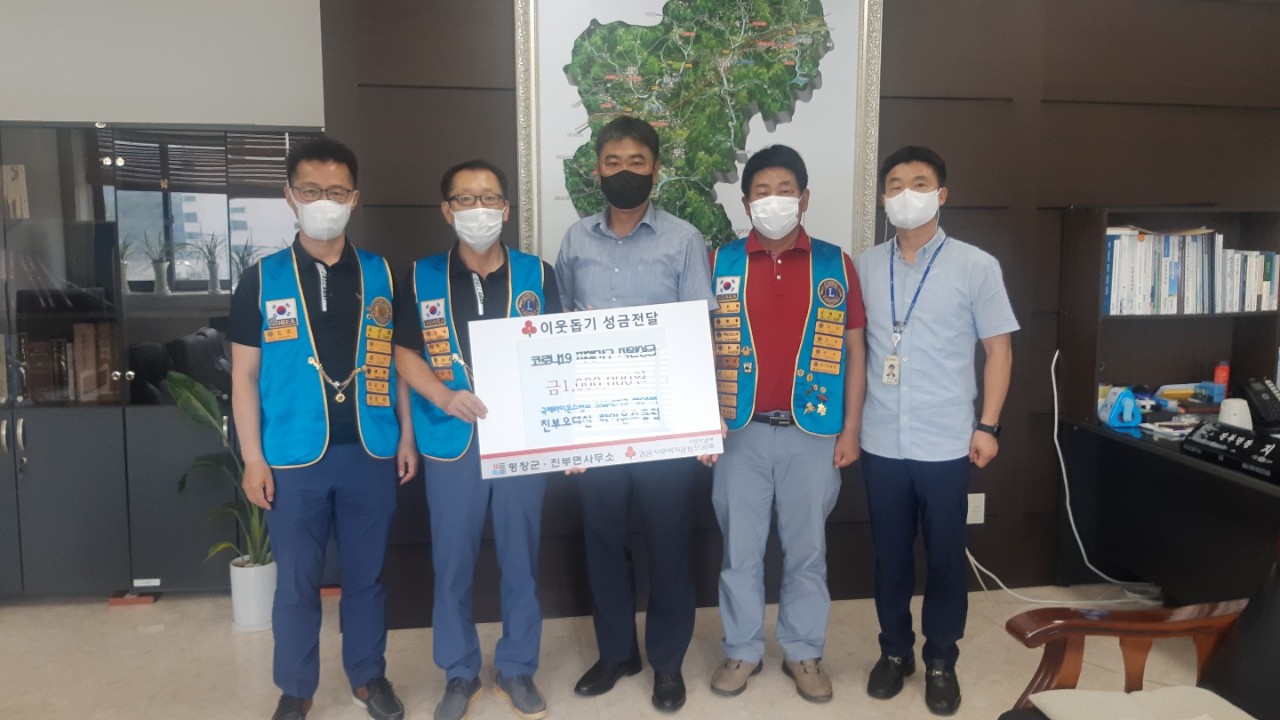 진부오대산라이온스클럽(회장 심대규)은 코로나19 극복을 위한 이웃돕기성금으로 100만원을 진부면사무소에 기탁하였다.