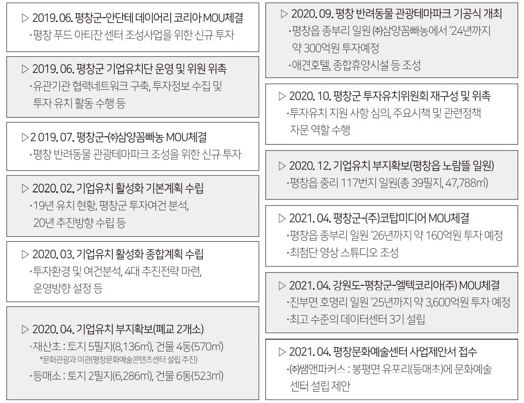 지역경제 발전을 위한 지방자치단체의 주요 성장 전략으로서 투자유치를 추진했다.
