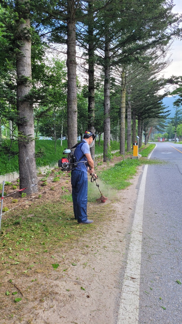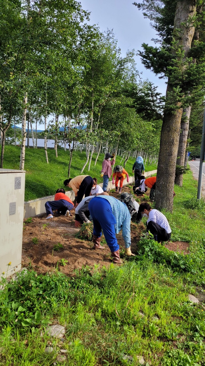 지난 7월 24일 진부면 동산리 이장과 주민들이 수국을 지키기위해 잡초 제거를 실시했다. 수국 꽃밭을 지키기 위한