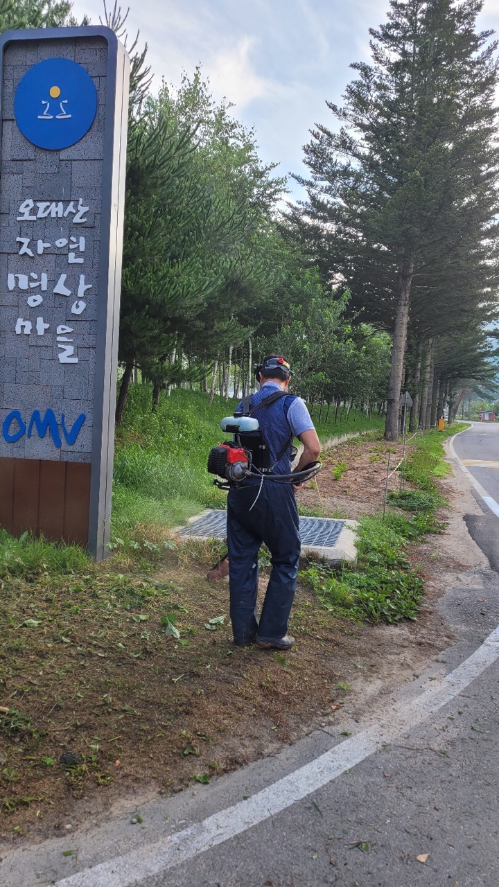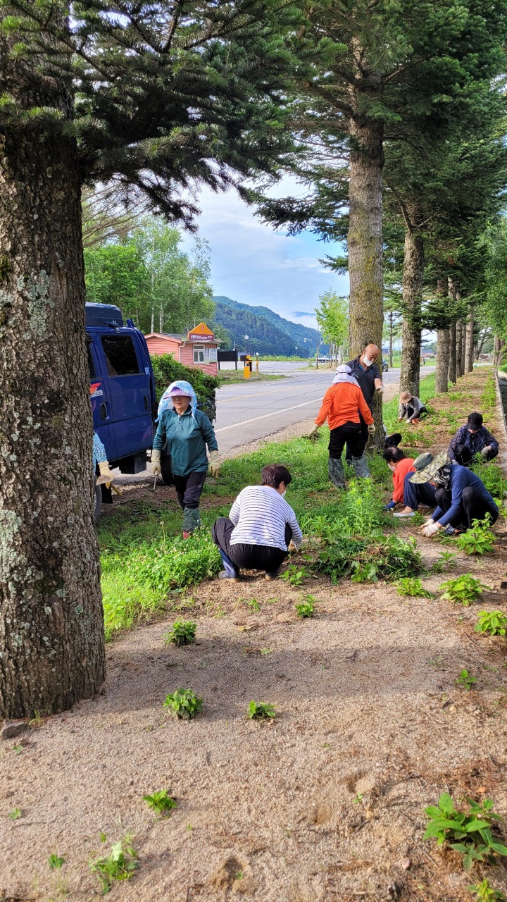 지난 7월 24일 진부면 동산리 이장과 주민들이 수국을 지키기위해 잡초 제거를 실시했다. 수국 꽃밭을 지키기 위한