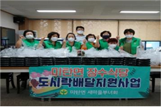 지난(8.21.) 미탄면 새마을부녀회(회장 지은미)는 그동안 코로나19로 인하여 중단되었던 장수식당을 비대면으로 운영하여 마을 어르신들 200분께 삼계탕을 만들어 배달을 완료하였으며,