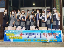 어제(8.24.) 행복을 굽는 제과제빵평생학습팀(강사 조혜경) 9명은 평생학습 프로그램을 통해 배운 제과제빵 기술로 지역사회 취약계층을 위해 300인분(900) 빵을 만들어 전달함.