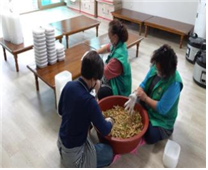 미탄면새마을부녀회는 장날(1,6)마다 마을별로 도시락 배달하는 방식으로 장수식당을 운영하고 있음.