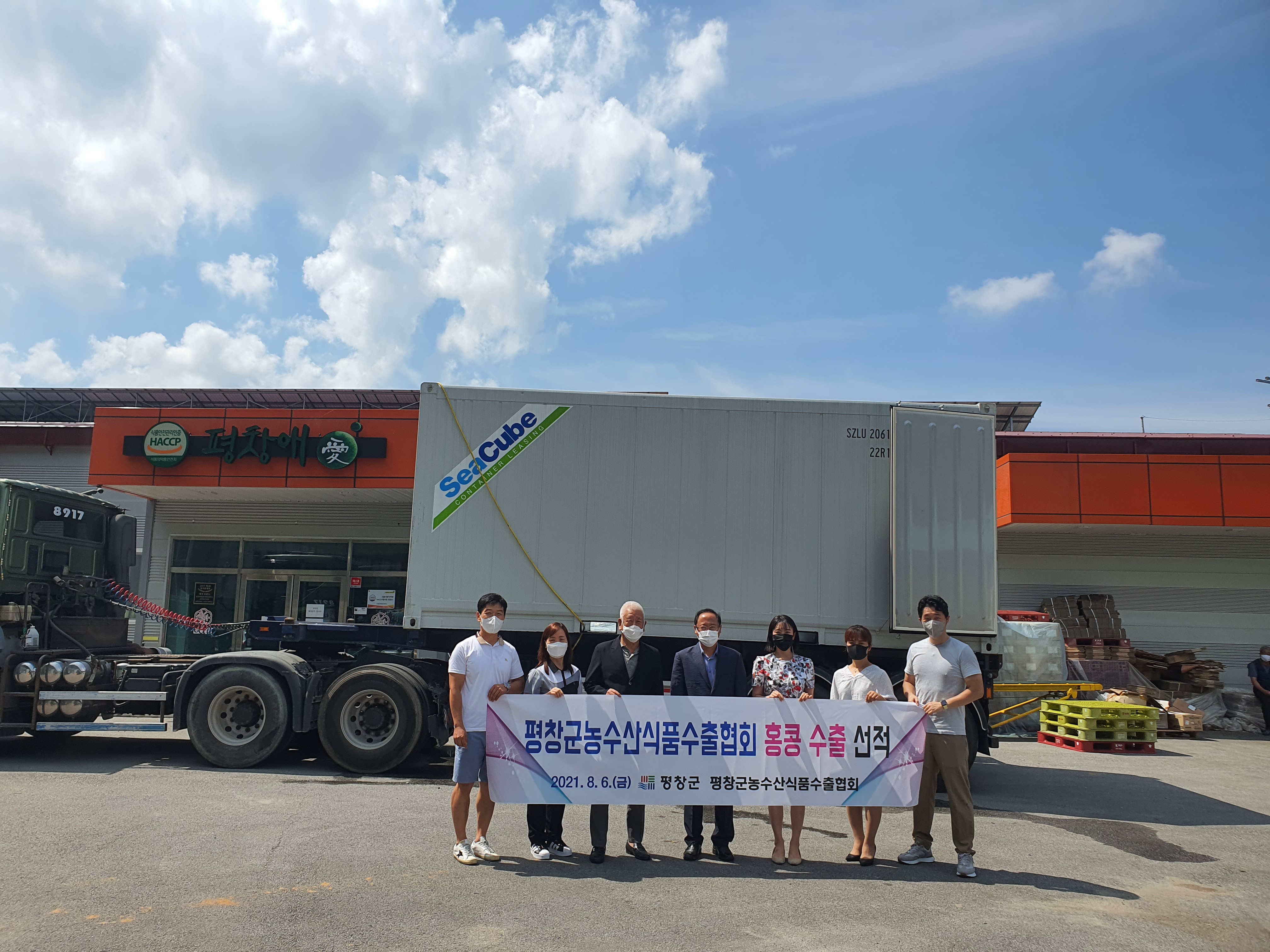 평창군은 농식품의 홍콩 현지 홍보판촉행사를 위한 수출 선적식을 6일 오전 ㈜올마루 앞에서 농업기술센터 이상명 소장, 평창군농수산식품수출협회 이대영 회장 등이 참석한 가운데 열었다.