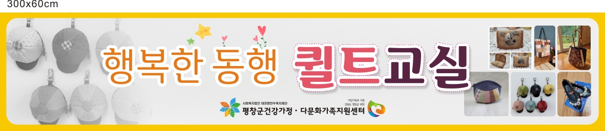 평창군건강가정·다문화가족지원센터(센터장 최미자)에서는 오는 8월 12일부터 11월 4일까지 매주 목요일 12회에 걸쳐 “행복한 동행, 퀼트교실” 프로그램을 운영한다고 밝혔다.