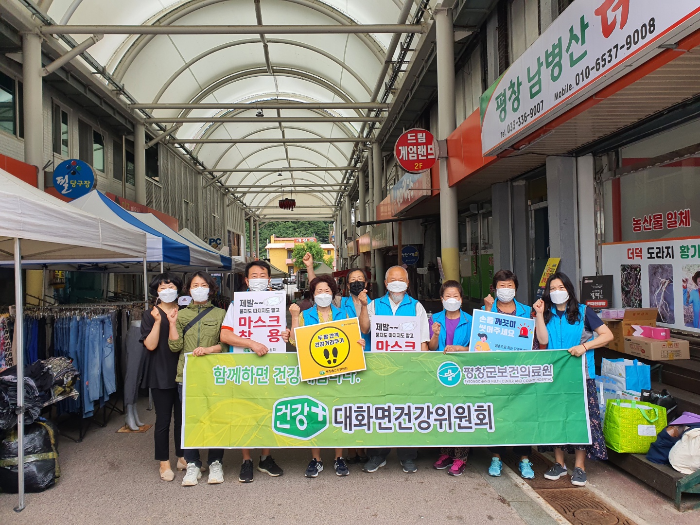대화면 건강위원회(위원장 오관록)는 14일(토) 오전 9시부터 대화 전통시장 내에서 지역 주민을 대상으로, 코로나19 예방백신 접종 홍보와 여름철 폭염대비 건강 수칙에 대한 안내 캠페인을 진행했다.