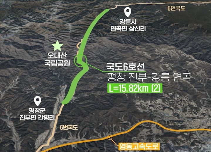 * ② 국도6호선(평창 진부 ~ 강릉 연곡) : 연장 15.82km, 2차로 개량 / 2,691억원